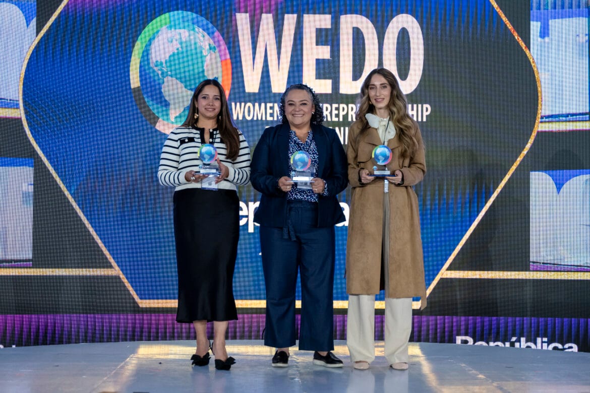 Alessandra Bregni, fundadora de Nova Models; Heidy Juarez, fundadora de Innovagen y también a Jennifer Medina Castañeda, fundadora de Cintora Textiles. Ellas fueron seleccionadas entre las más de 100 mujeres que aplicaron este año al reconocimiento del “Women’s Entrepreneurship Day Organization – WEDO-.