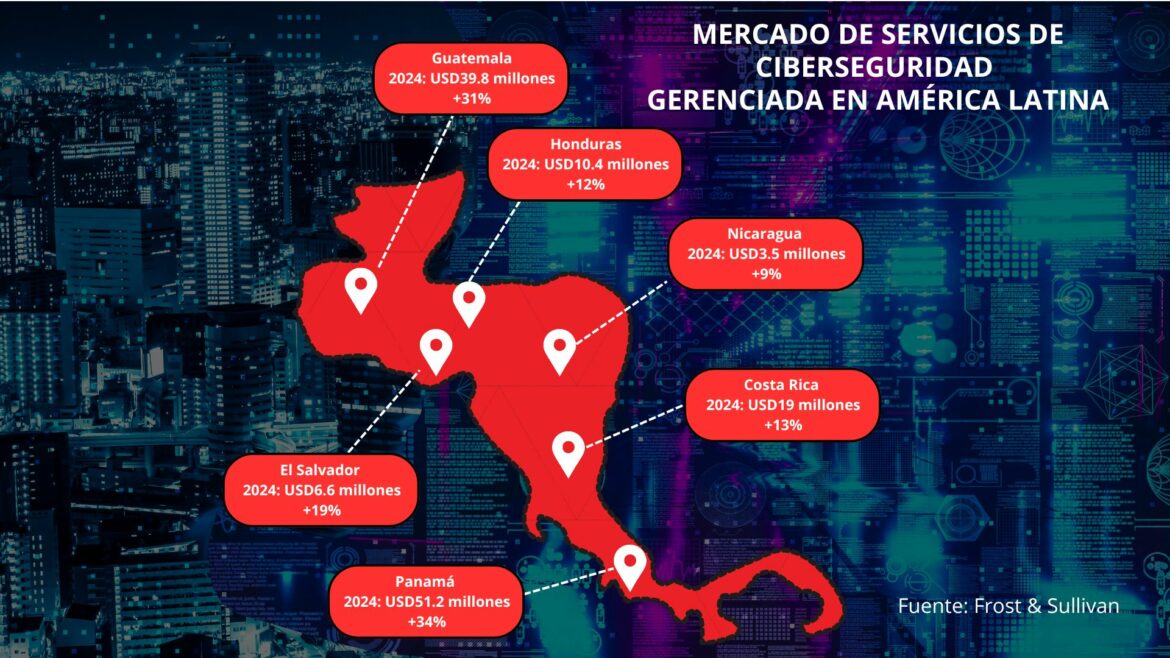 A nivel regional, los servicios de ciberseguridad gerenciada han presentado un crecimiento importante dentro del mercado. En el reporte de Frost & Sullivan, se presentan importantes números para Centroamérica: