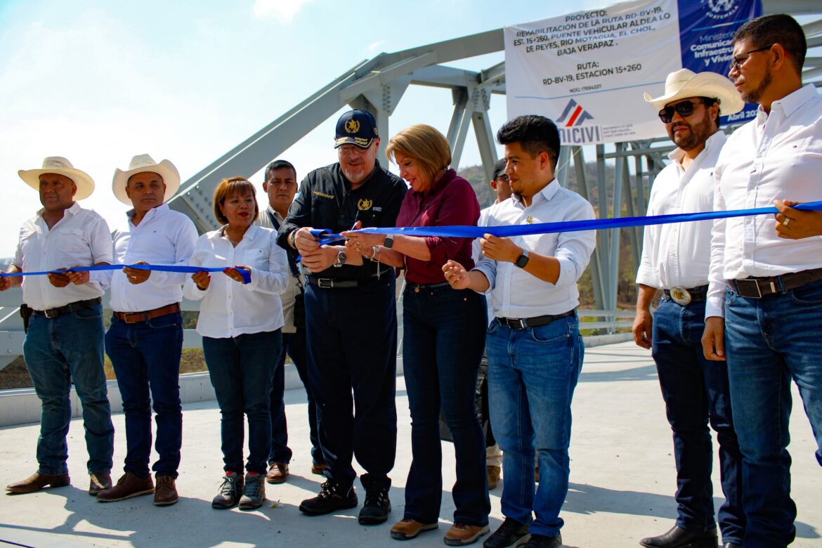 En Santa Cruz El Chol, Baja Verapaz se inauguró, este 22 de abril, el nuevo puente Lo de Reyes, destruido por la tormenta tropical Agatha en 2010. El acto lo presidieron el presidente Bernardo Arévalo; la ministra de Comunicaciones, Infraestructura y Vivienda, Jazmín de la Vega; la diputada Marleni Matías y el alcalde Enrique Milián. Esta obra, con una longitud de 126 metros y un ancho de 6 metros, con banquetas a los lados de 0.80 metros de ancho para el paso peatonal, reviste de importancia porque es la primera obra de este tipo que el actual gobierno hace entrega.